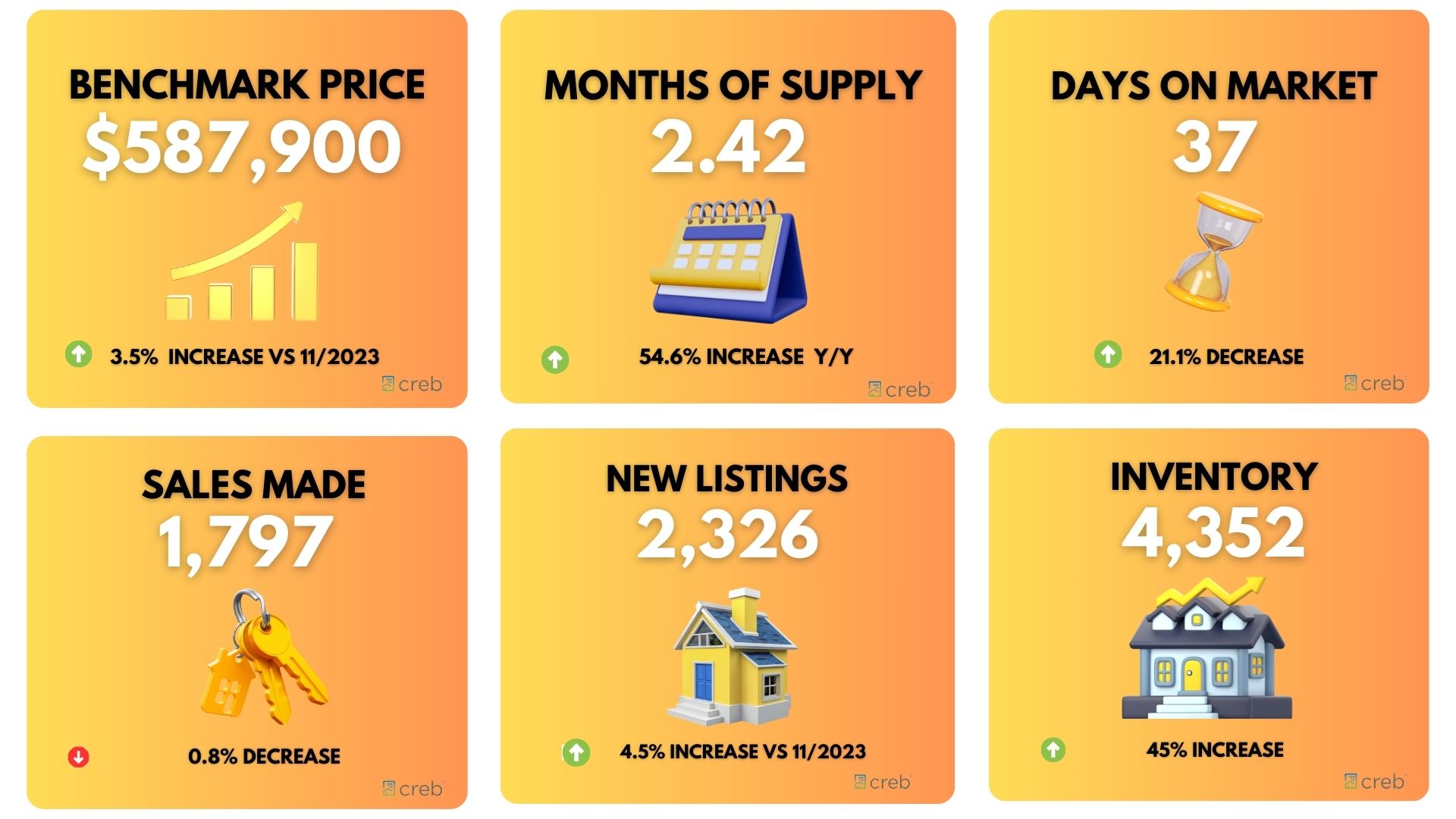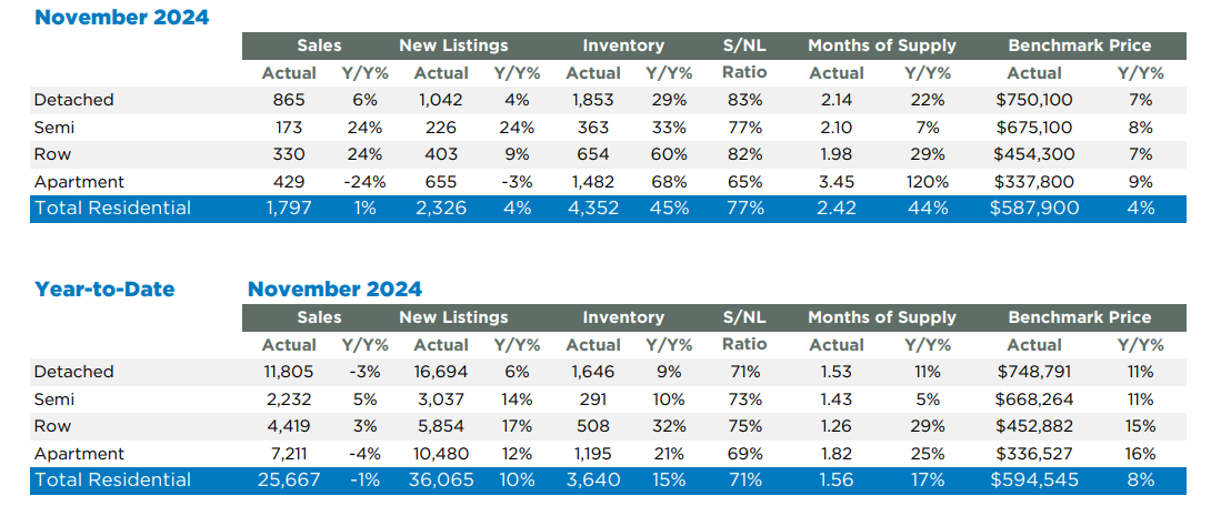 Pricing: The benchmark price rose to $624,000, 6% higher year-over-year. Detached home prices hit $707,300, while row-style properties saw the largest gains.