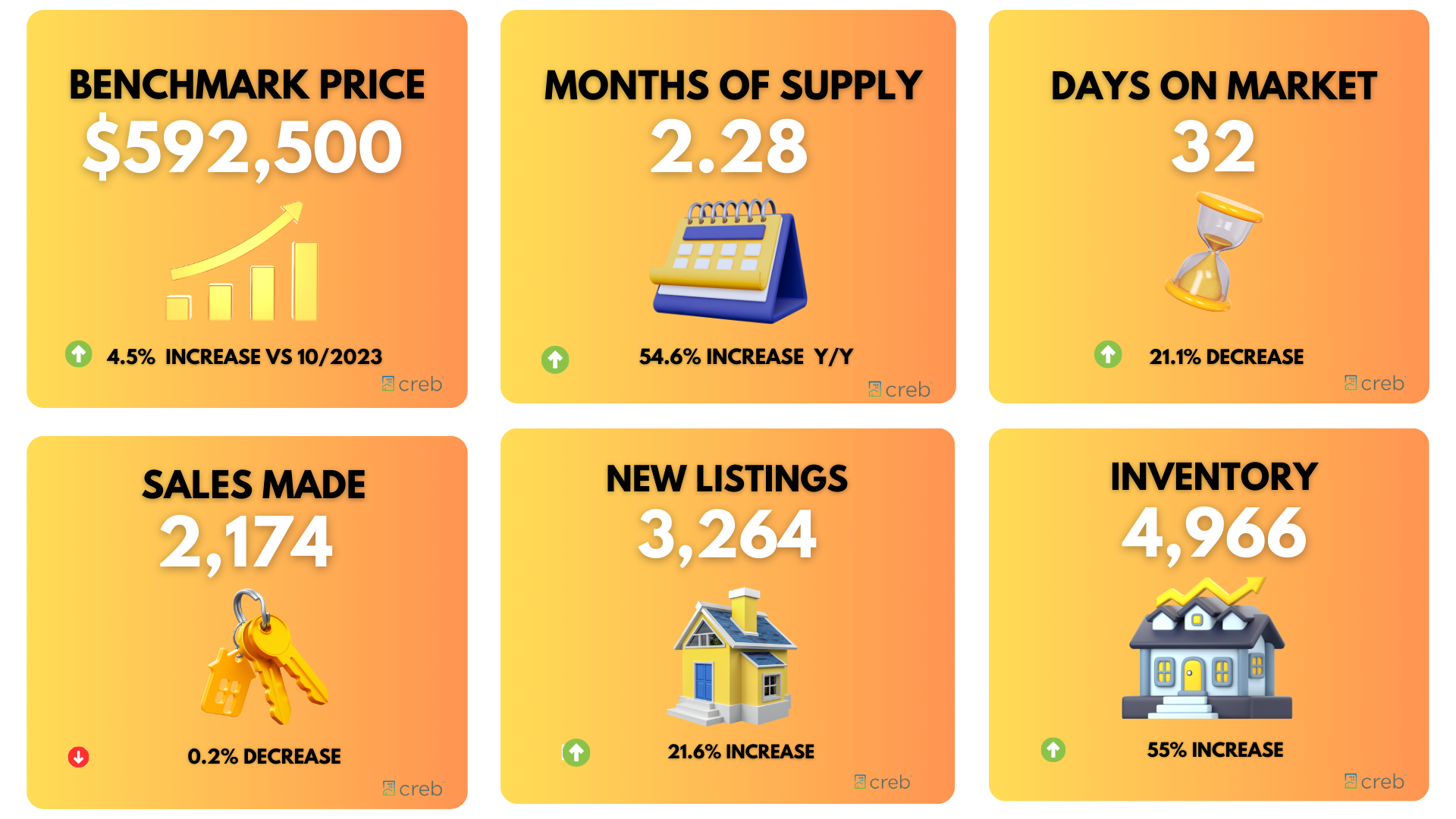 Sales & Listings: October sales increased compared to last year, contributing to a 3% year-to-date growth. Inventory has grown but is still below optimal levels, maintaining a months-of-supply ratio near two months.
